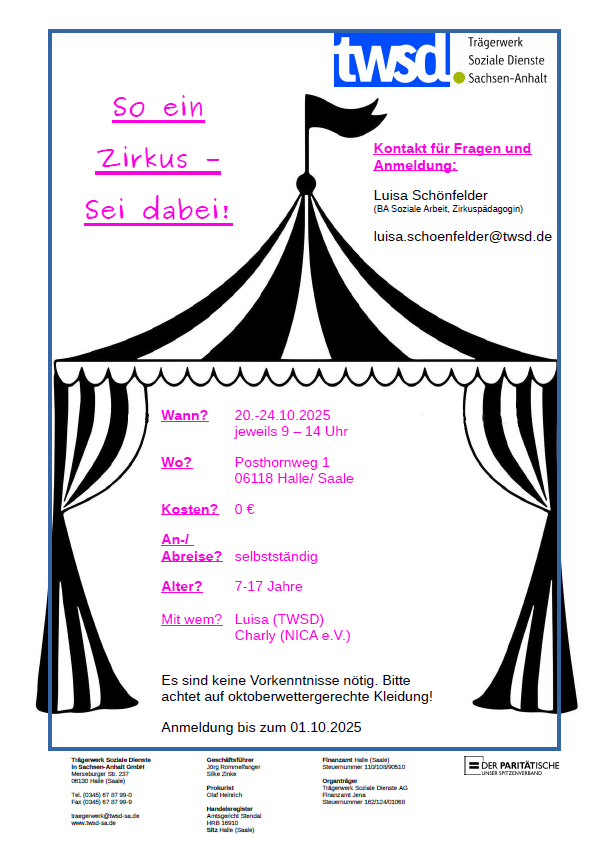Anmeldung bei Luisa: luisa.schoenfelder@twsd.de